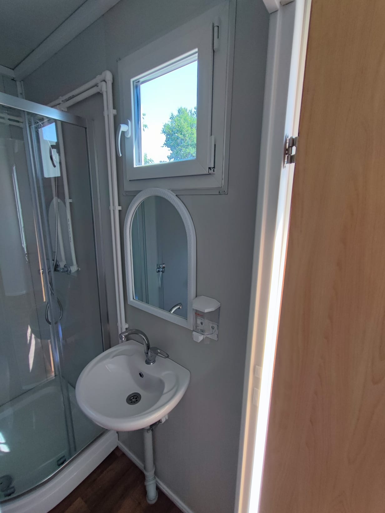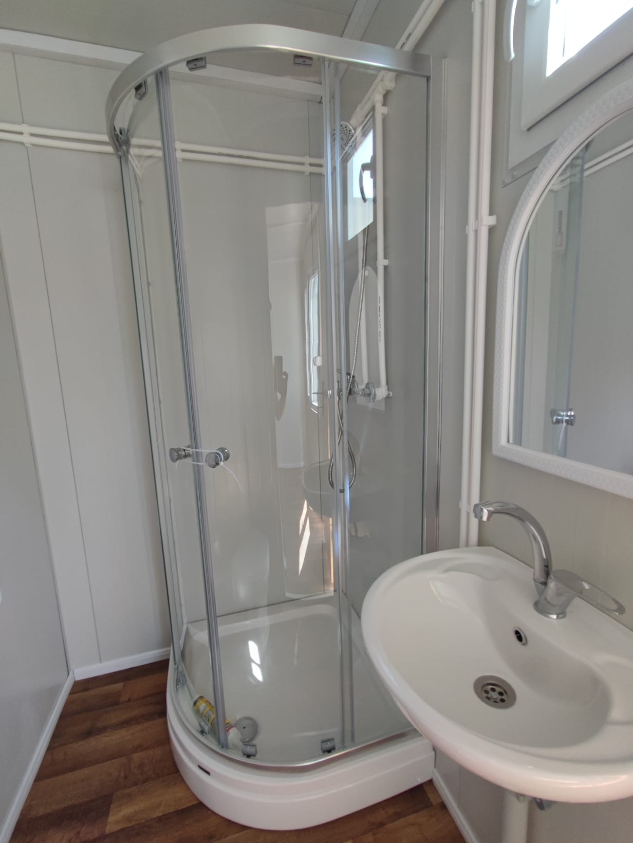 Nassbereiche sind mit 33×33 Keramik Fliesen ausgestattet