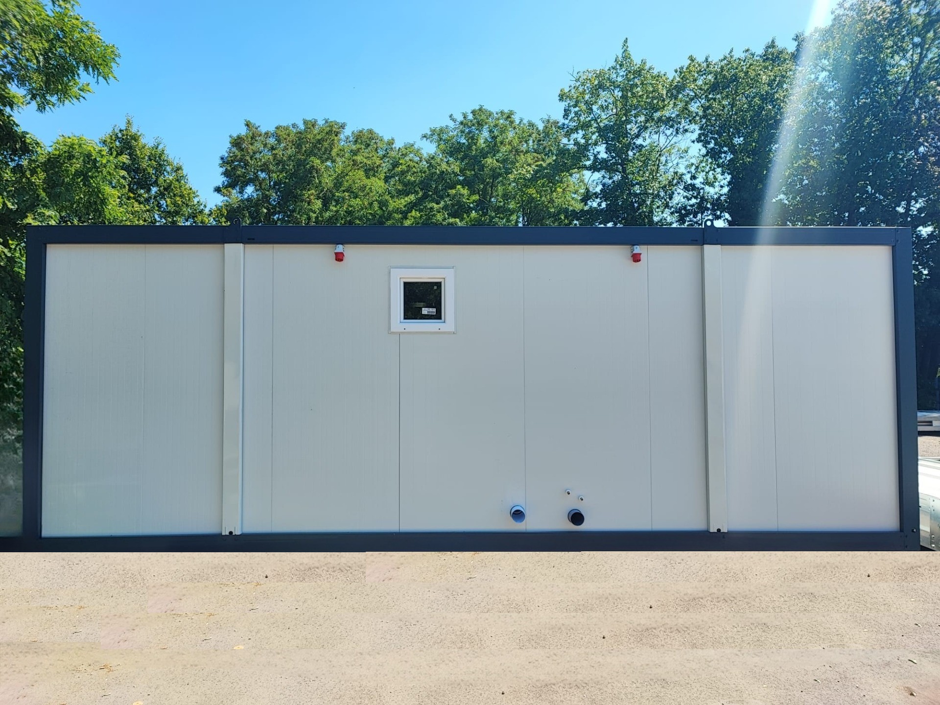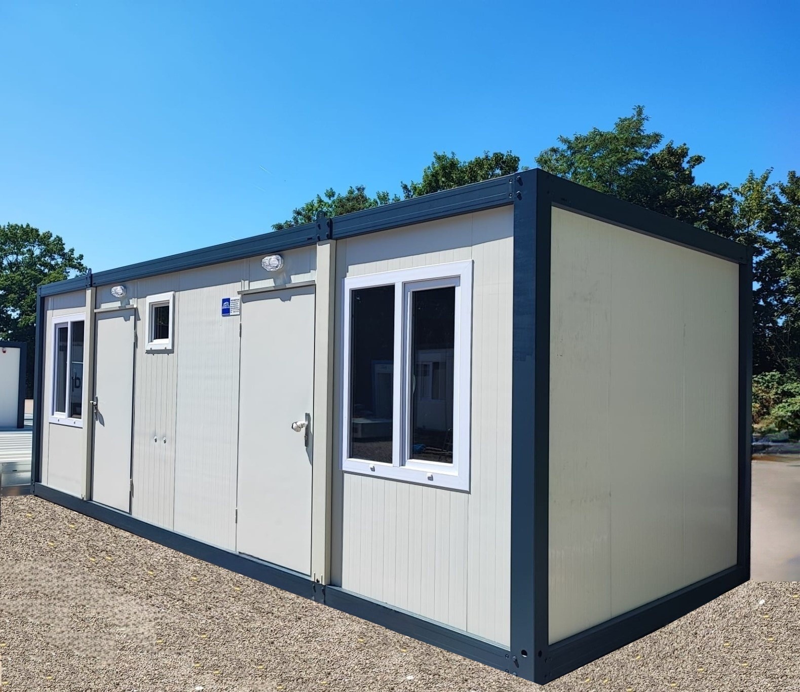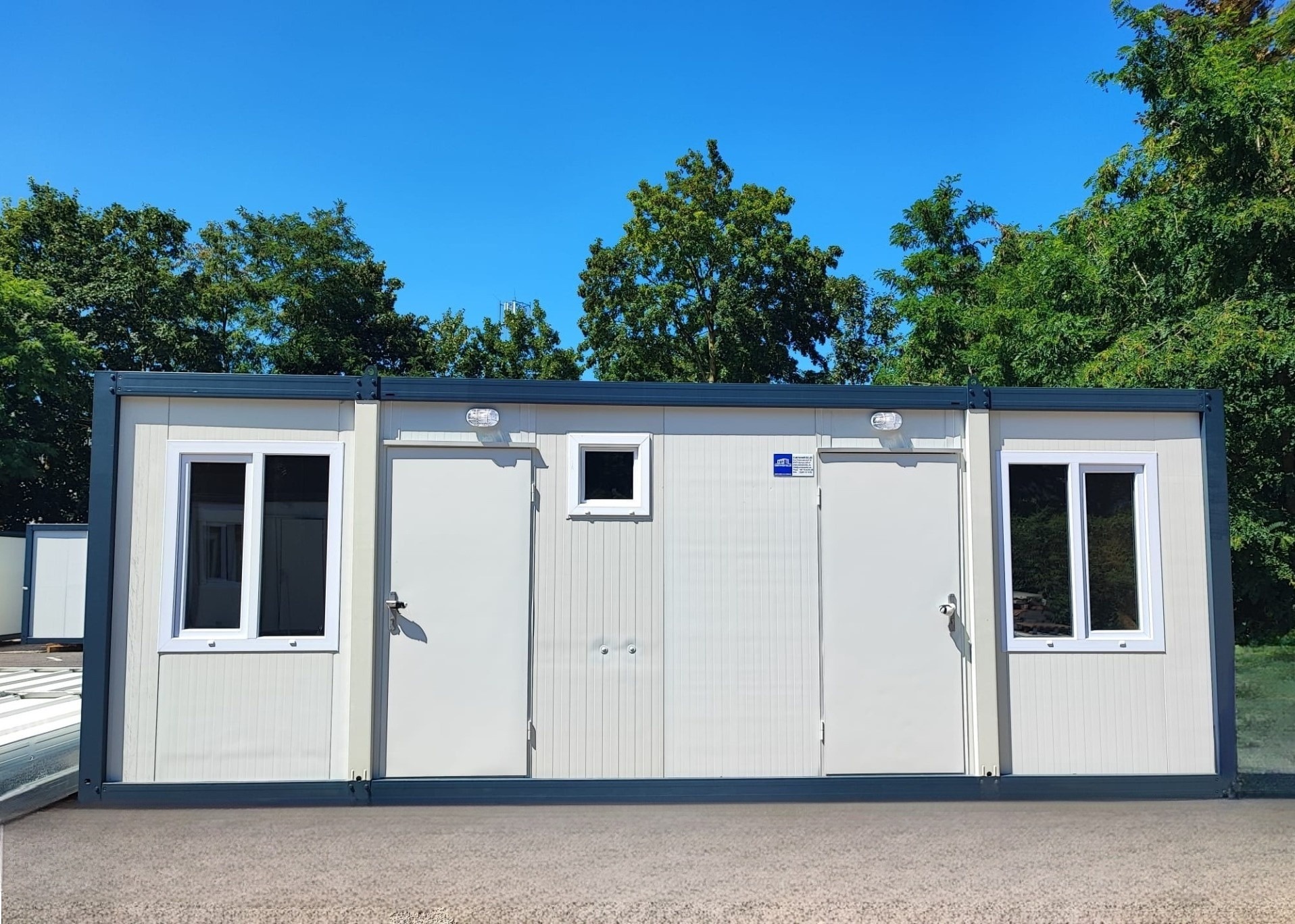 Wir haben zwei Standardgrößen mit den Maßen [2.40m x 6.00m x 2.60m] sowie [2.90m x 7.00m x 2.60m].