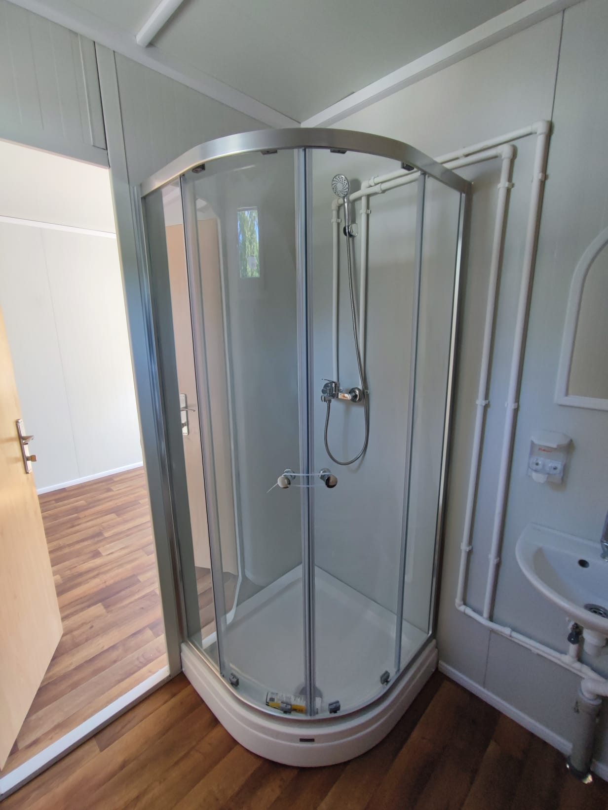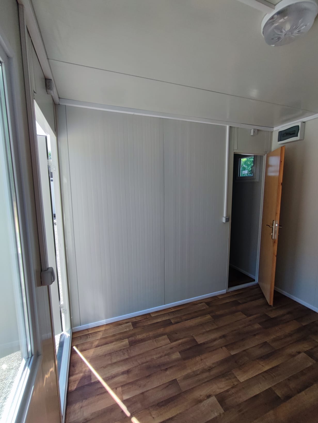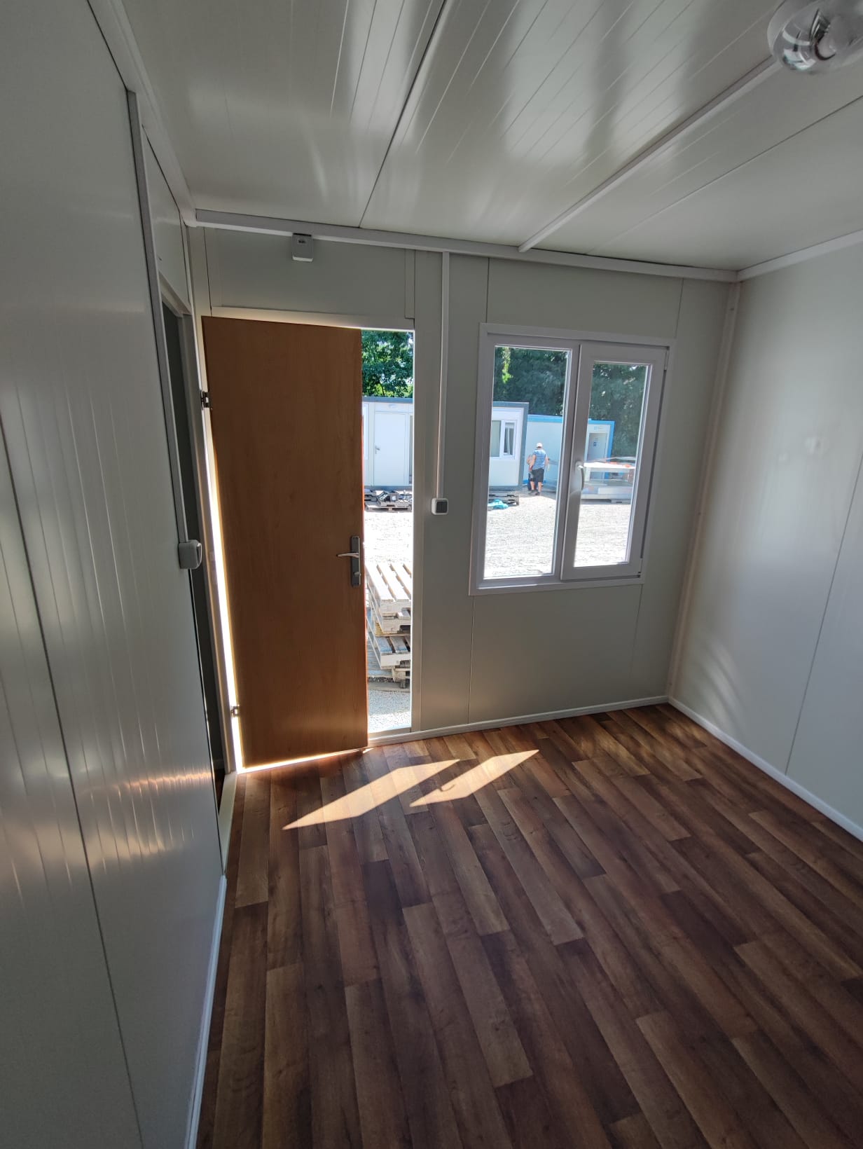 Wir haben zwei Standardgrößen mit den Maßen [2.40m x 6.00m x 2.60m] sowie [2.90m x 7.00m x 2.60m].