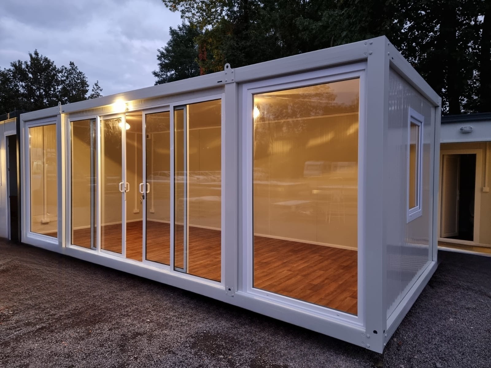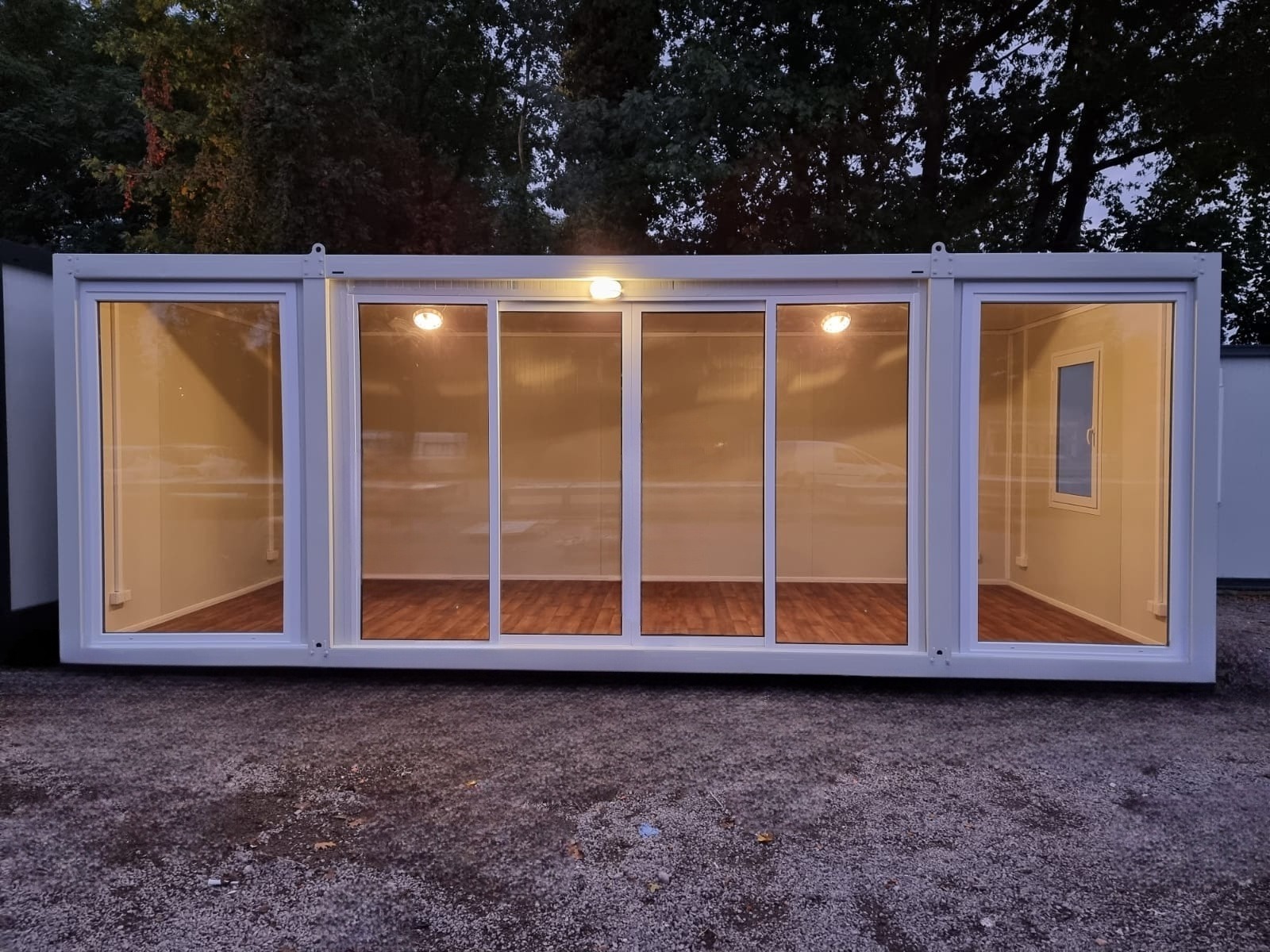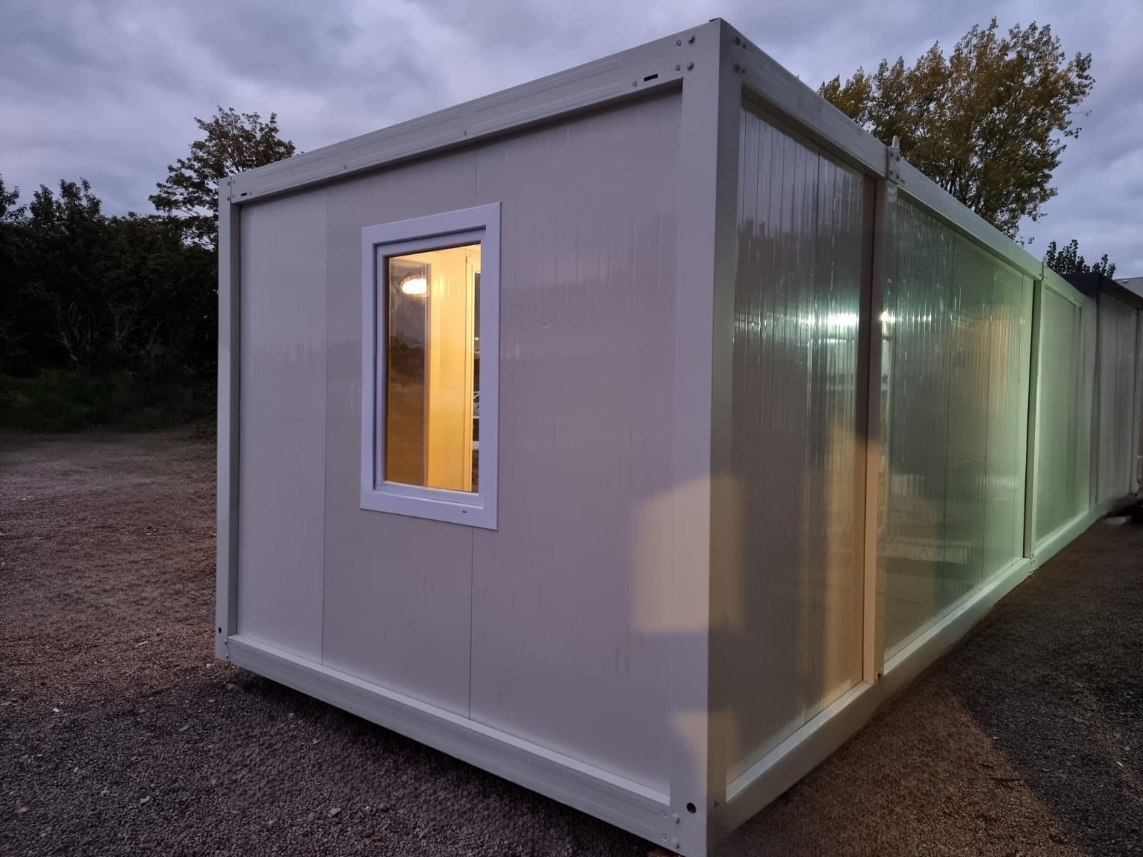 Wir haben zwei Standardgrößen mit den Maßen [2.40m x 6.00m x 2.60m] sowie [2.90m x 7.00m x 2.60m].
