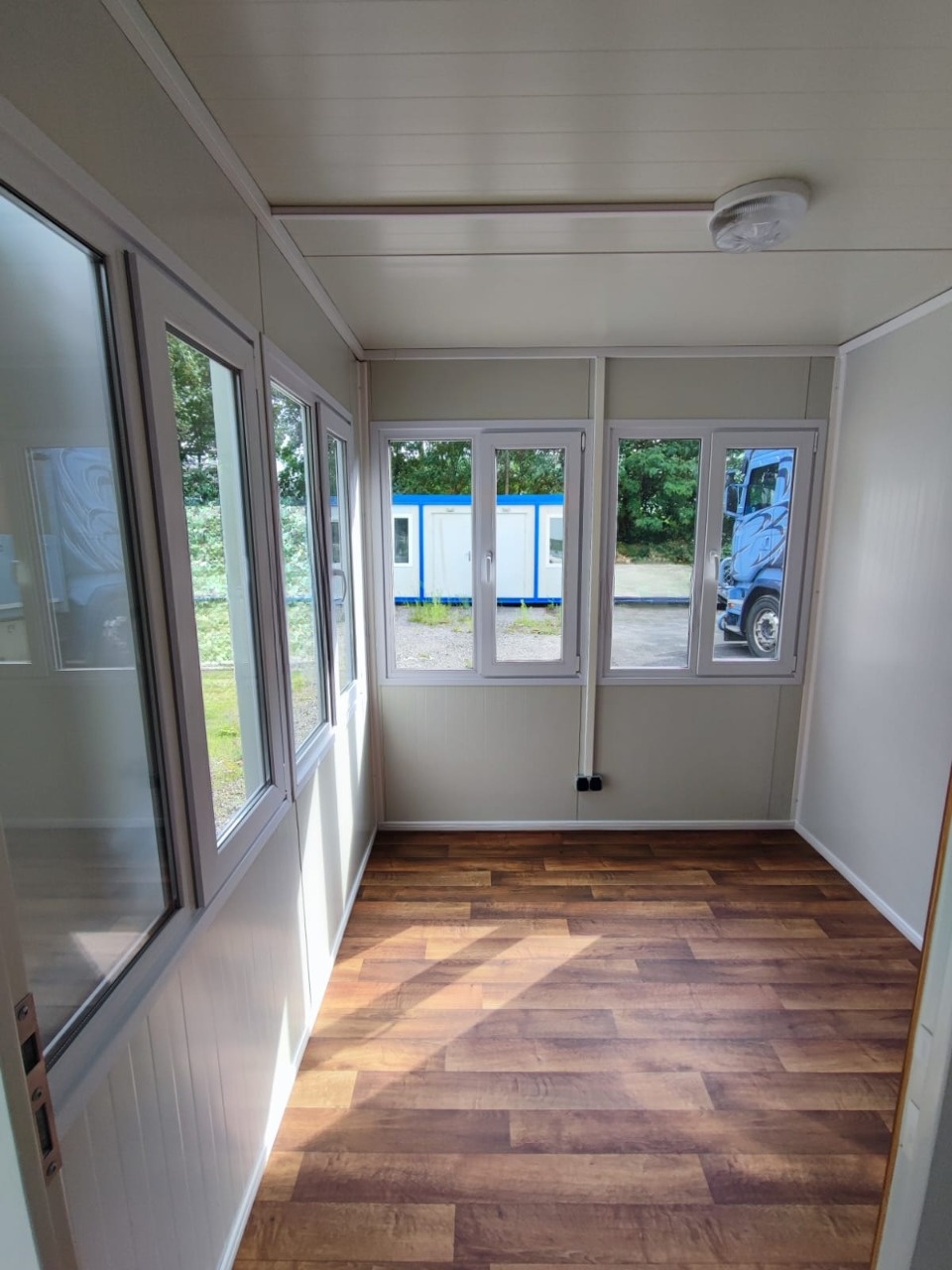Wir haben zwei Standardgrößen mit den Maßen [2.40m x 6.00m x 2.60m] sowie [2.90m x 7.00m x 2.60m].