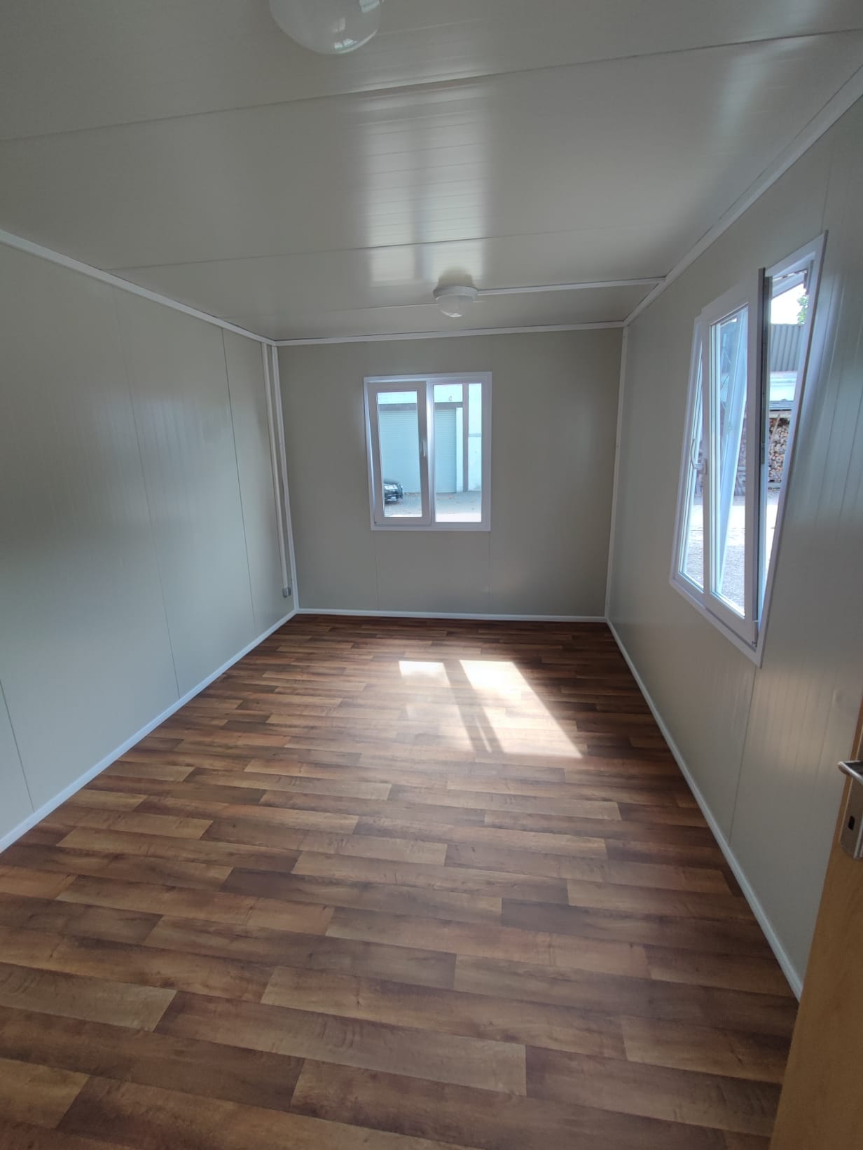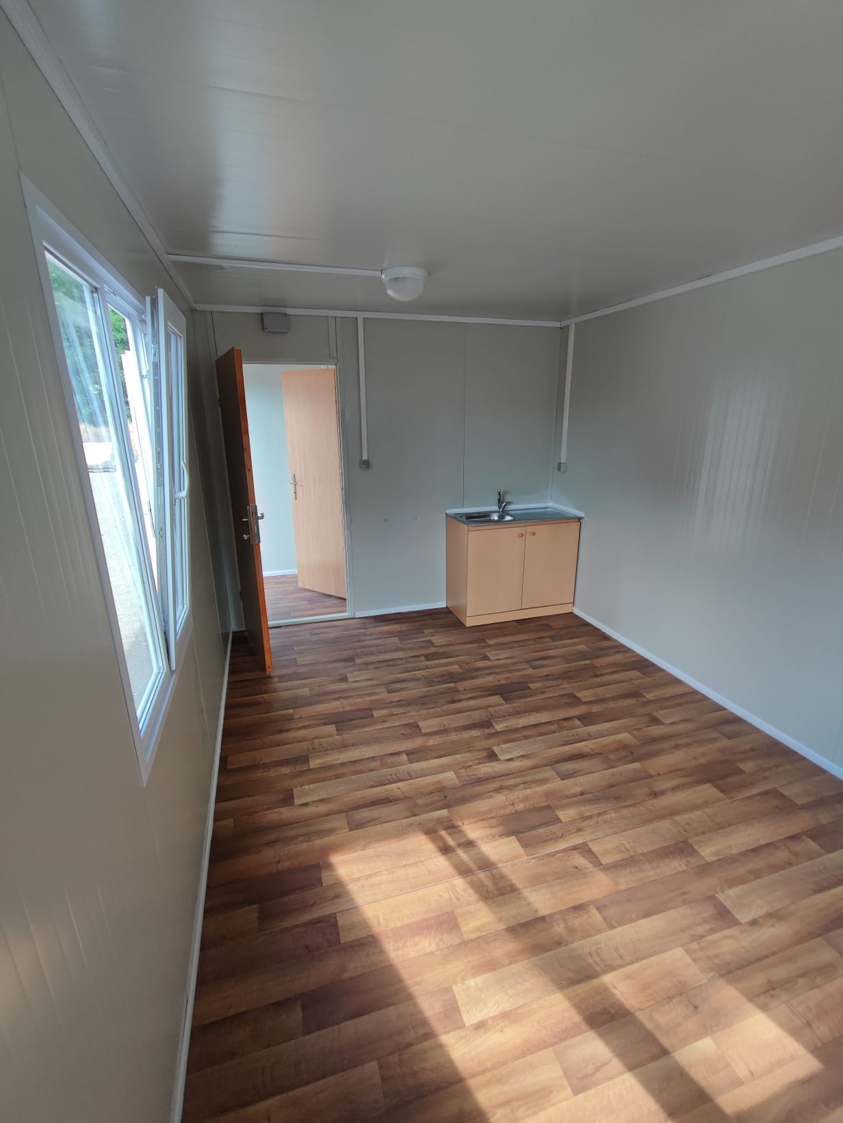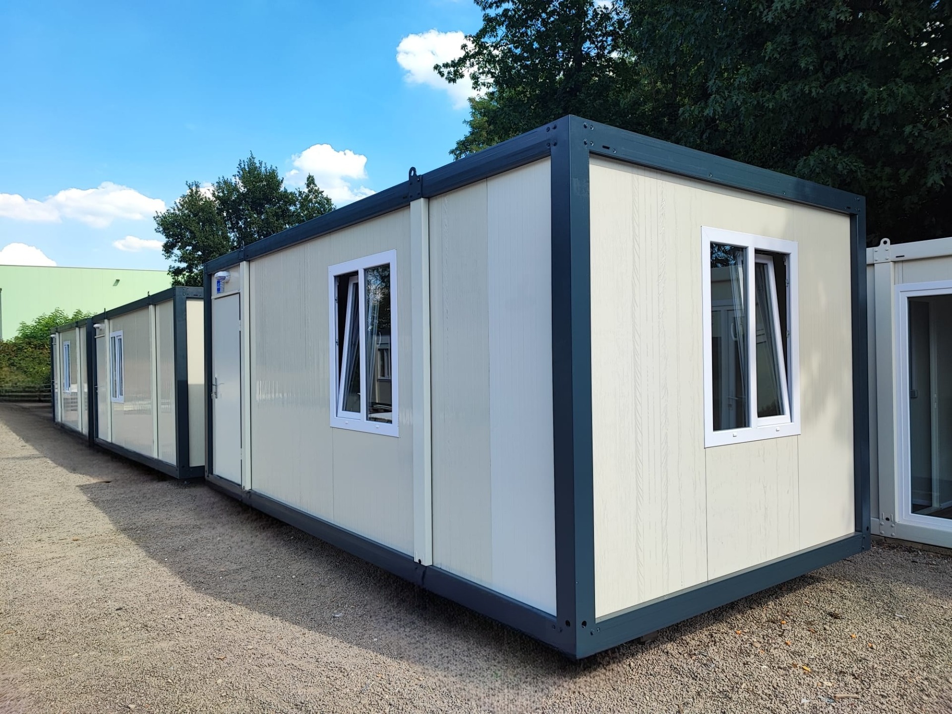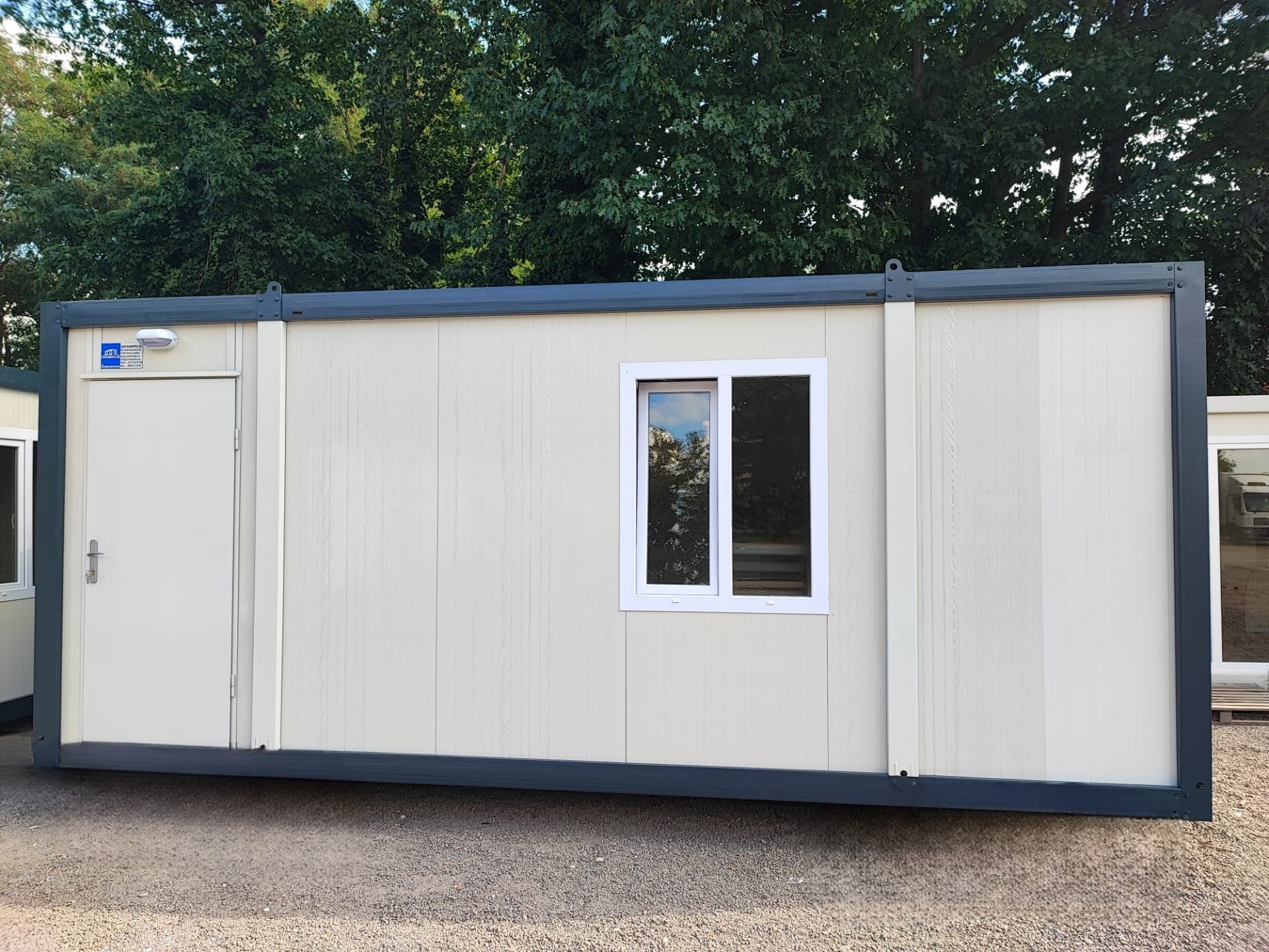 Wir haben zwei Standardgrößen mit den Maßen [2.40m x 6.00m x 2.60m] sowie [2.90m x 7.00m x 2.60m].