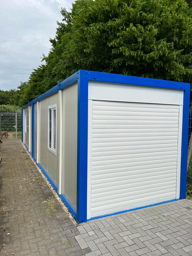 Wir haben zwei Standardgrößen mit den Maßen [2.40m x 6.00m x 2.60m] sowie [2.90m x 7.00m x 2.60m].
