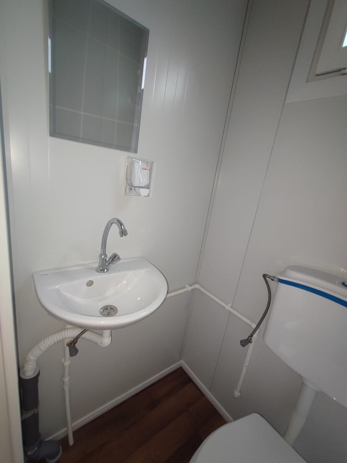 Die Waschbecken werden mit Kalt- und Warmwasser-Zuleitungen sowie montierten Armaturen ausgeliefert