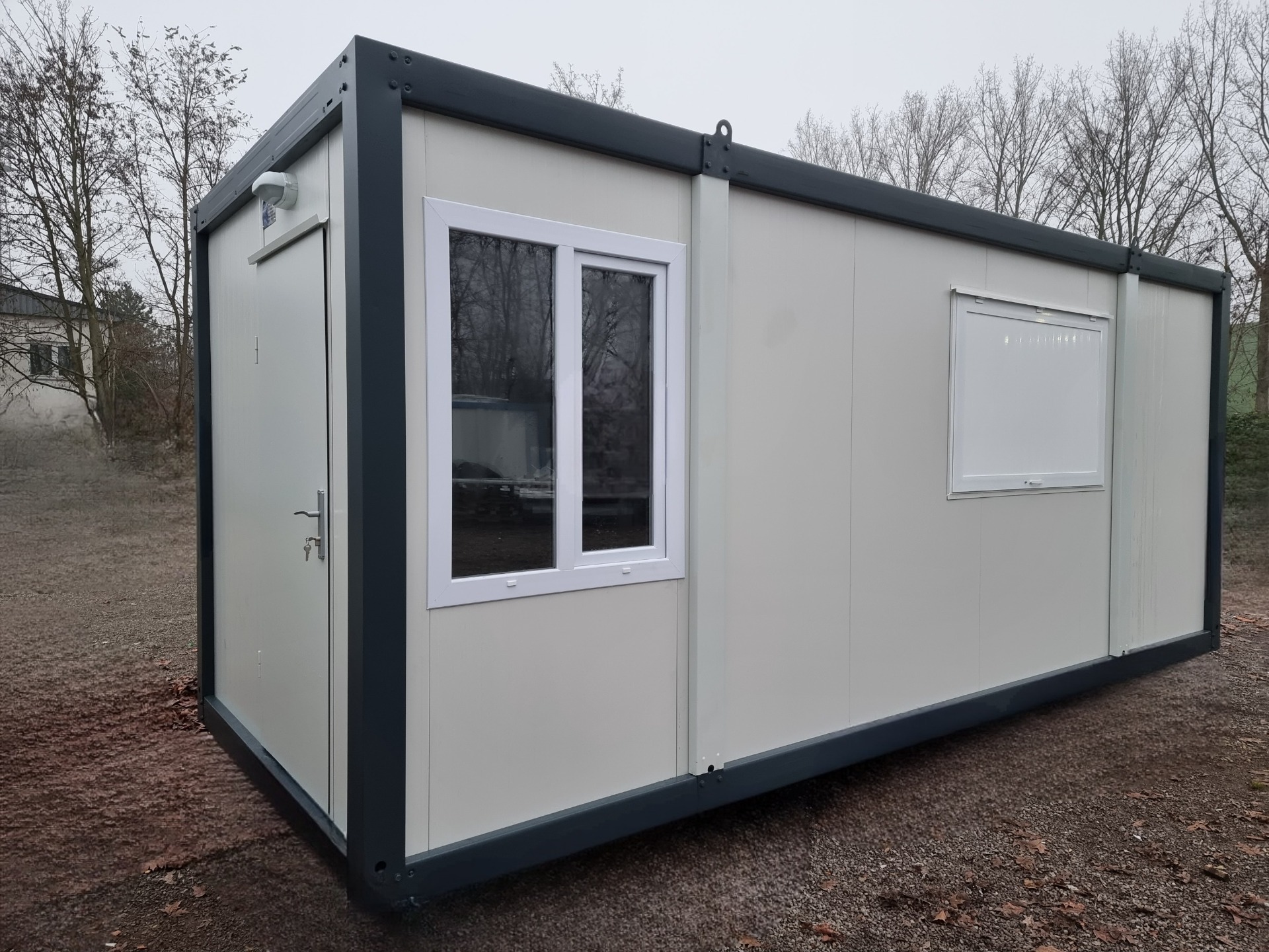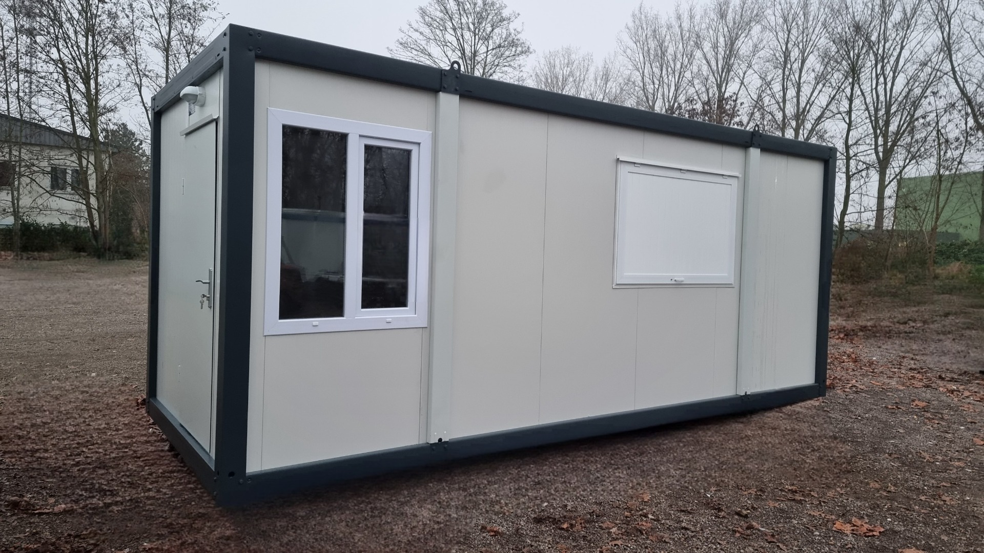 Wir haben zwei Standardgrößen mit den Maßen [2.40m x 6.00m x 2.60m] sowie [2.90m x 7.00m x 2.60m].