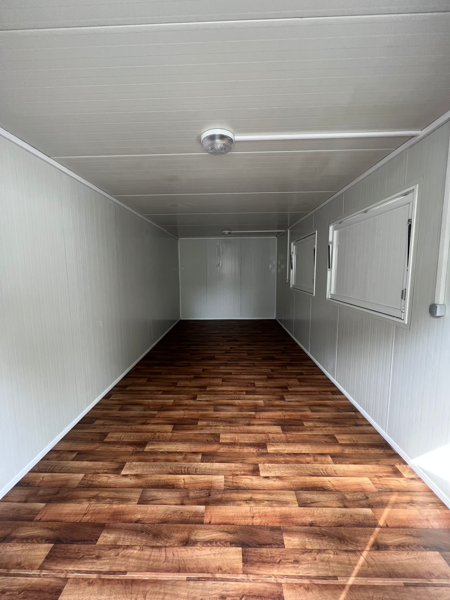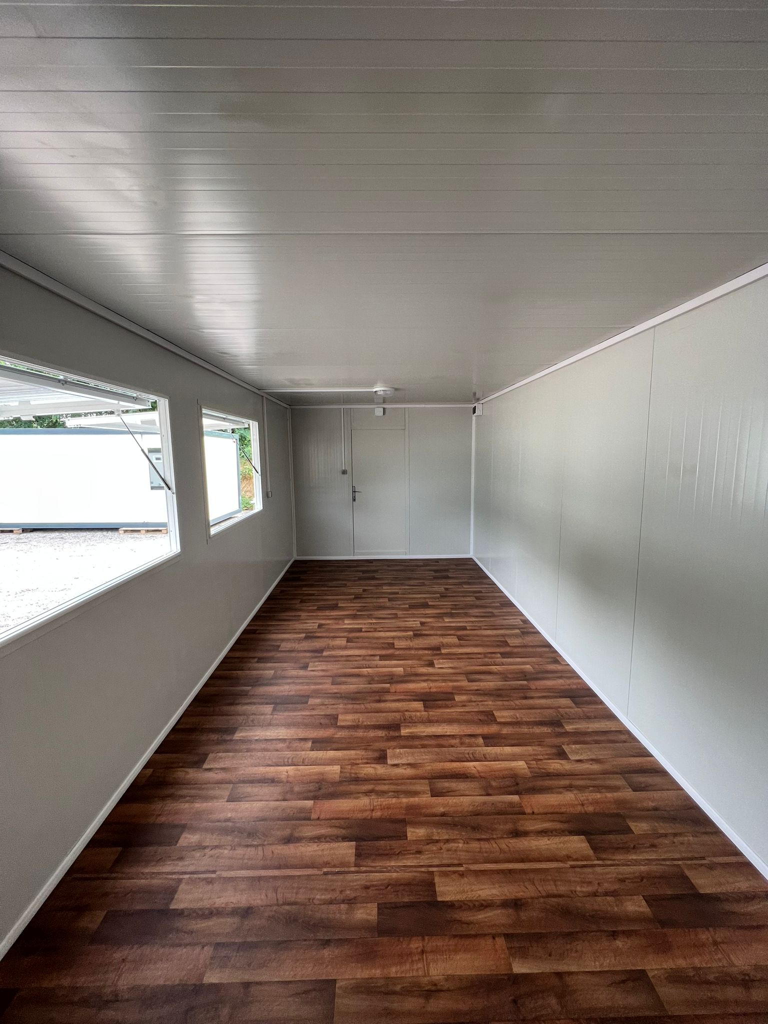 Wir haben zwei Standardgrößen mit den Maßen [2.40m x 6.00m x 2.60m] sowie [2.90m x 7.00m x 2.60m].