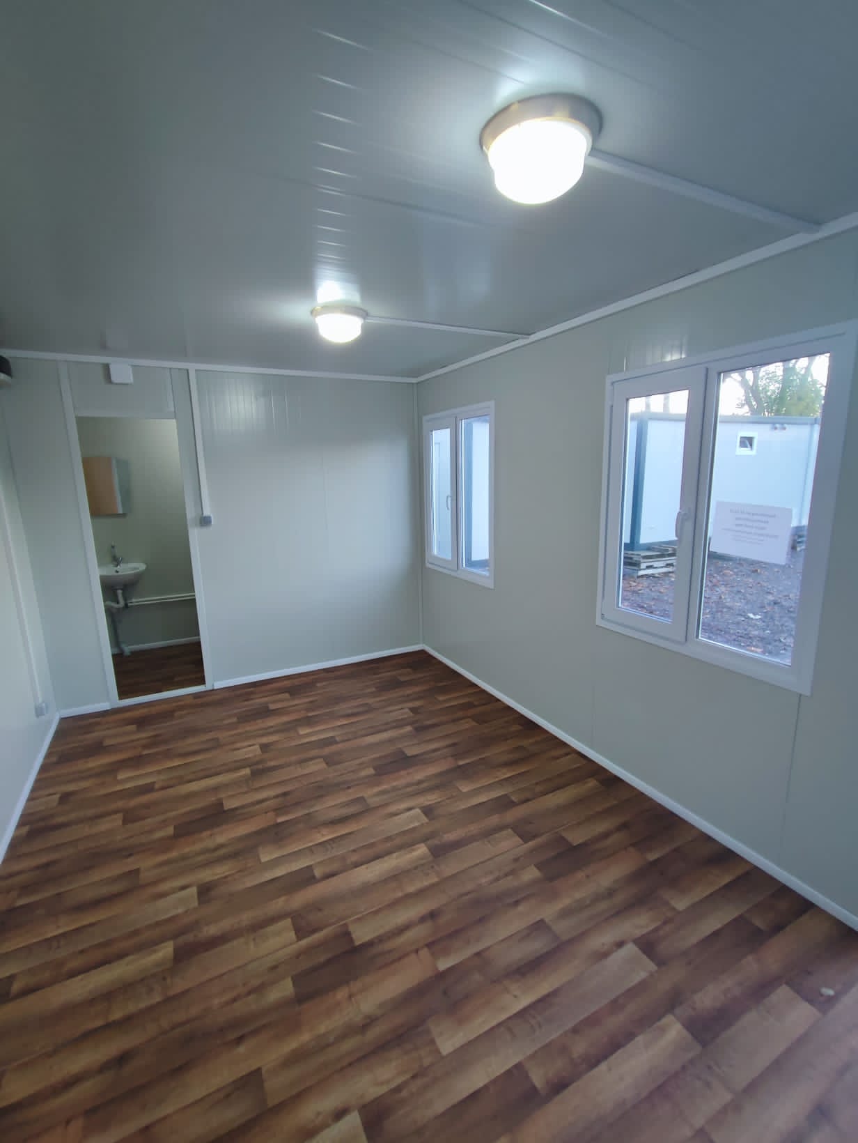 Wir haben zwei Standardgrößen mit den Maßen [2.40m x 6.00m x 2.60m] sowie [2.90m x 7.00m x 2.60m].