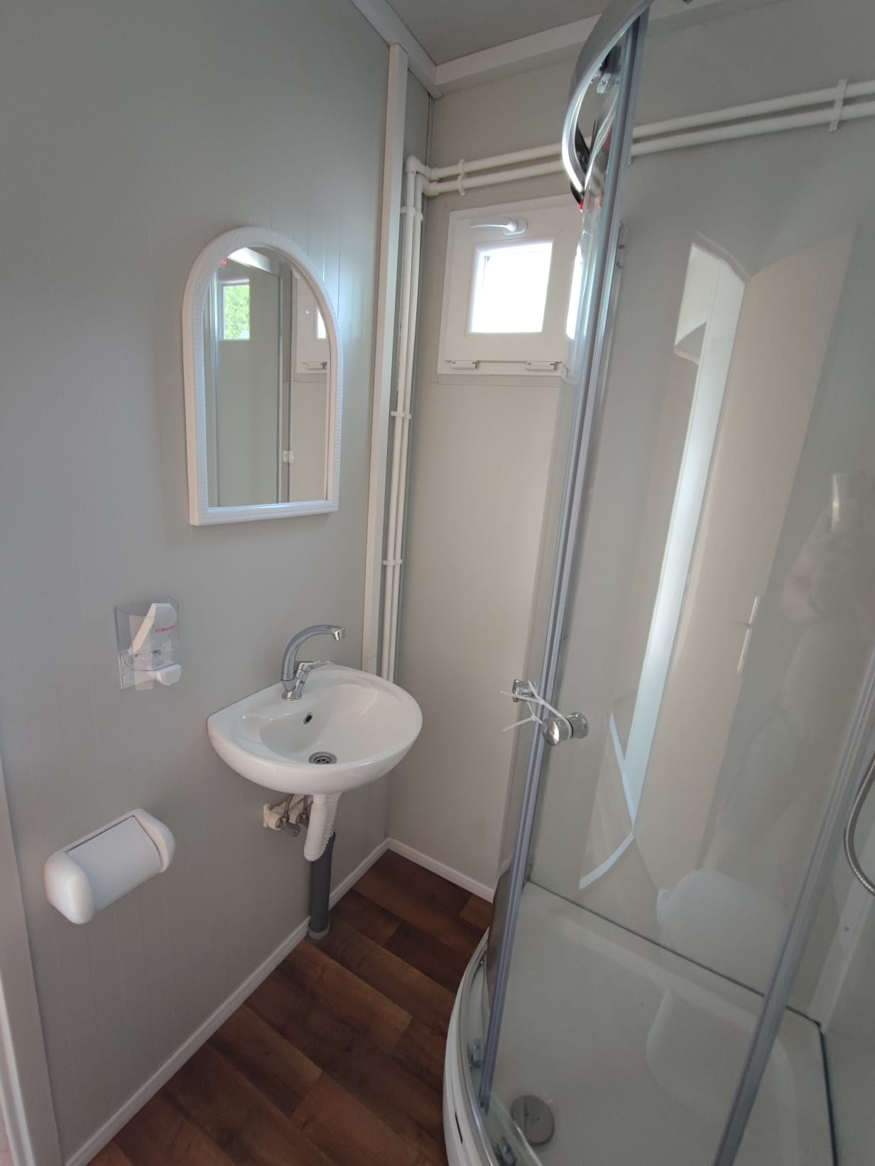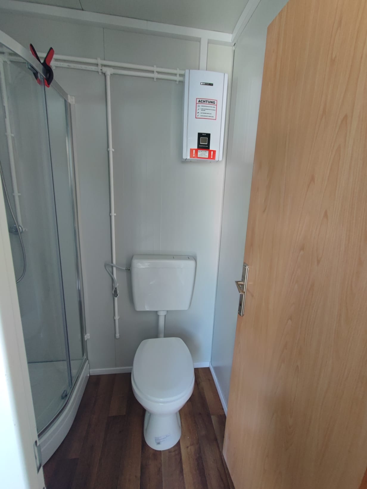 Privates Spa-Erlebnis im eigenen Bad: Das kompakte Badezimmer bietet alles, was Sie für Ihr persönliches Spa-Erlebnis benötigen. Von der modernen Duschkabine bis zur platzsparenden Waschgelegenheit – jedes Detail wurde sorgfältig durchdacht, um Ihnen maximalen Komfort auf kleinem Raum zu bieten.