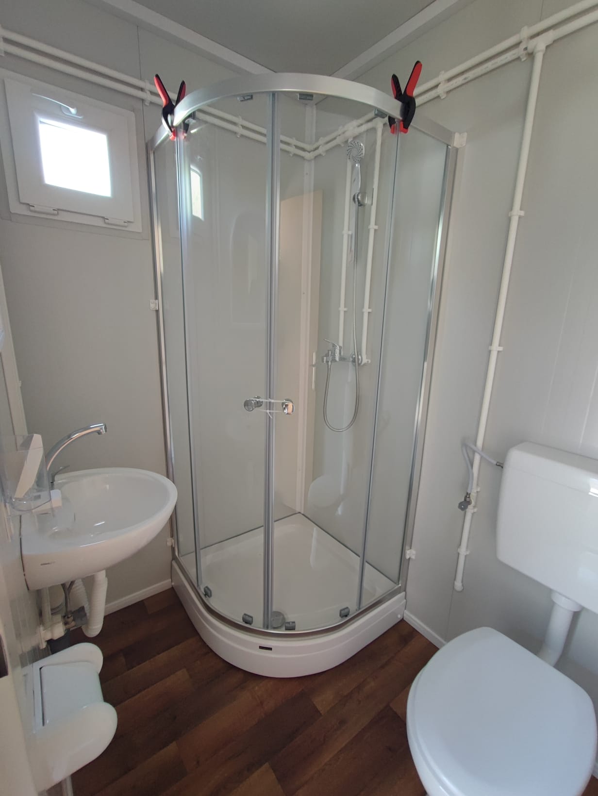 Die Waschbecken werden mit Kalt- und Warmwasser-Zuleitungen sowie montierten Armaturen ausgeliefert
